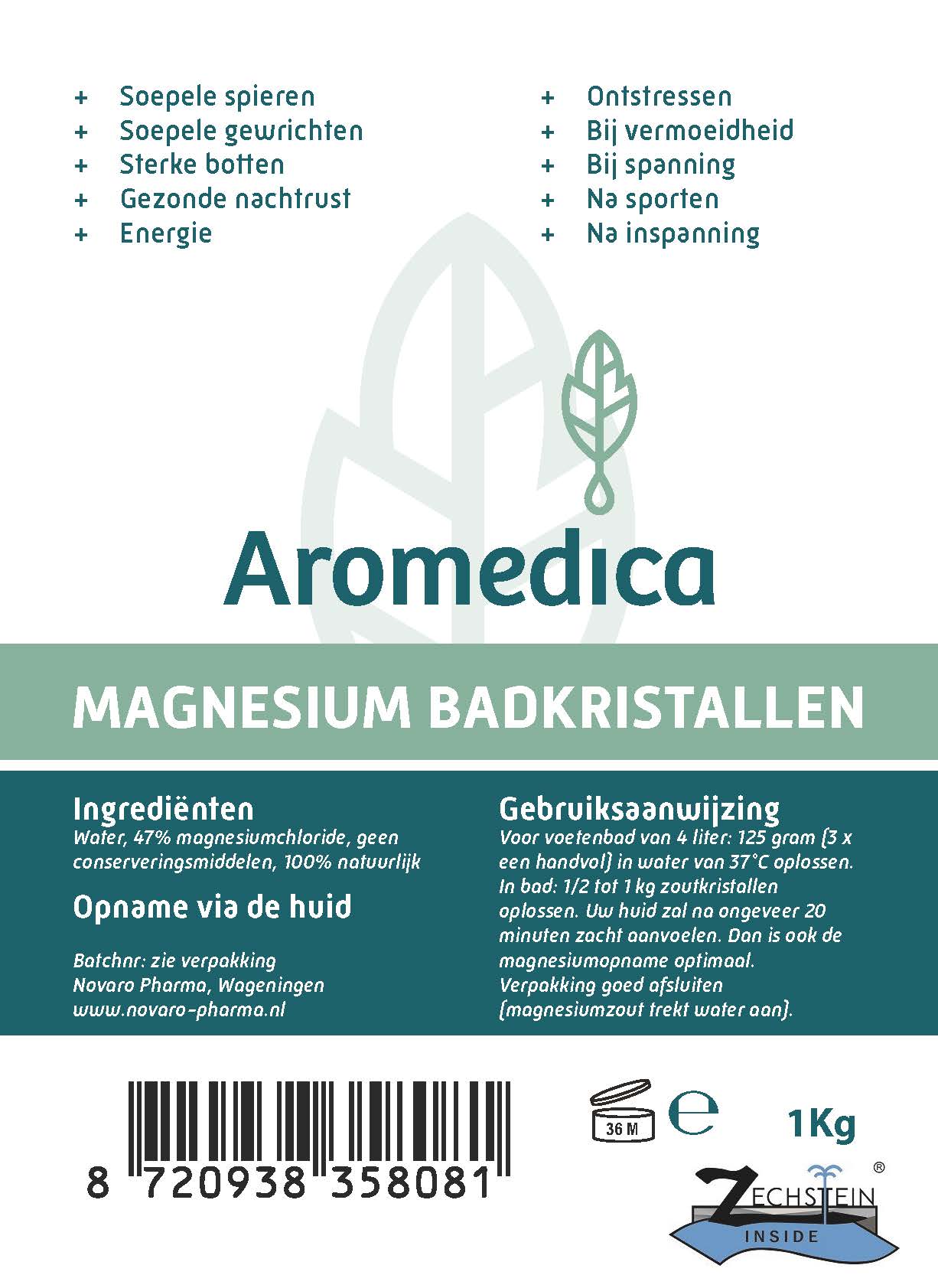 Aromedica Magnesium Badkristallen van farmaceutische kwaliteit worden gewonnen uit de Zechstein zeebodem en hebben het keurmerk “Zechstein Inside”.