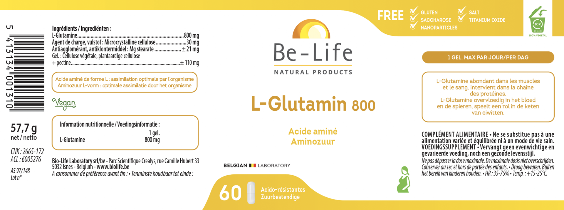 L-Glutamine, niet-GGO, Microkristallijne cellulose, Magnesium stearaat, Plantaardige cellulose (capsule)