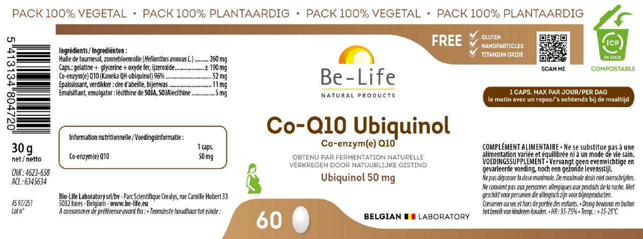 Co- Enzyme Q10 (Kaneka QH/Ubiquinol), Diglyceryl monooleaat, Koolzaadolie, Bijenwas, Sojalecithine, Capsule met gelatine en glycerine