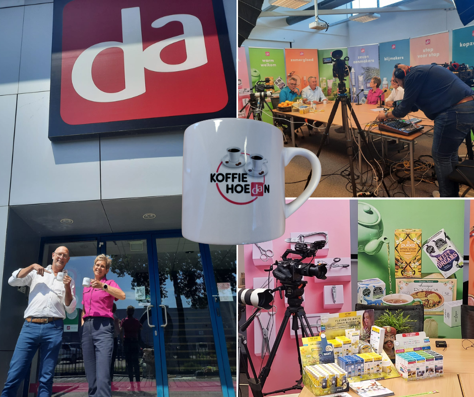 Mooie ervaring en promo, de opname van KoffieHoeDAn bij DA Drogist! Lemon Pharma Bach bloesems komen in de spotlight in de interne broadcast van de DA drogisterijen.