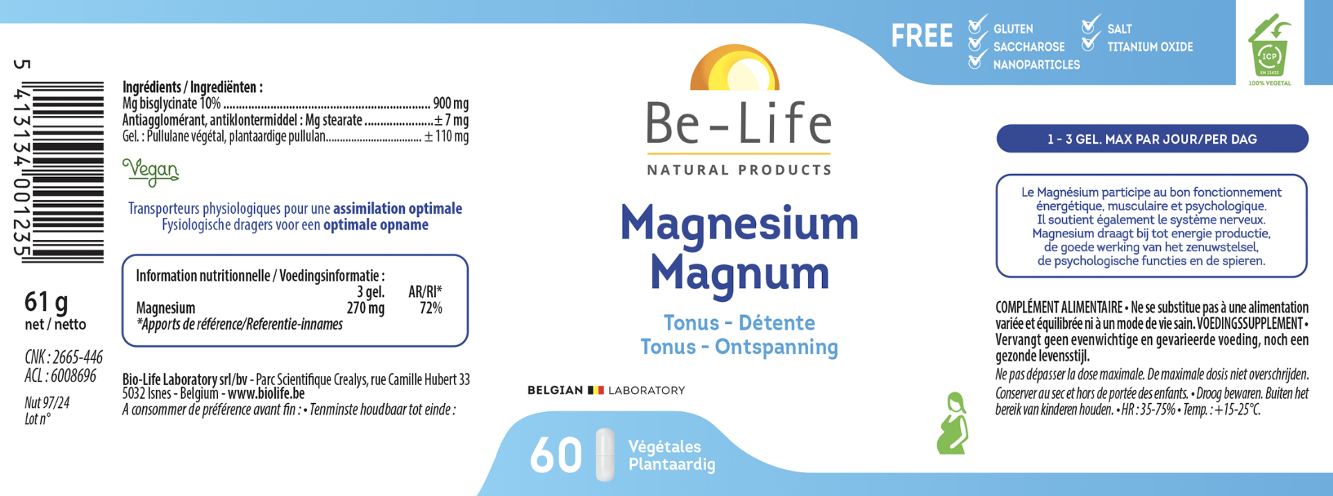 Magnesium bisglycinaat, Magnesiumstearaat, Plantaardige cellulose capsule