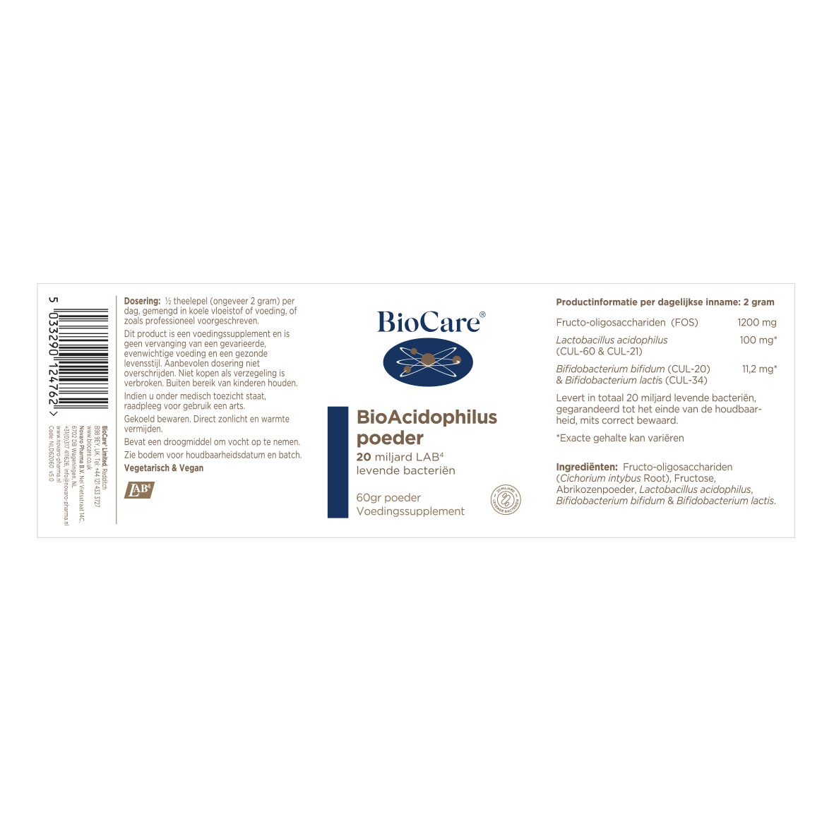 BioAcidophilus Powder is een mix van het unieke, klinisch onderzochte LAB4-complex van levende bacteriën voor dagelijks gebruik.