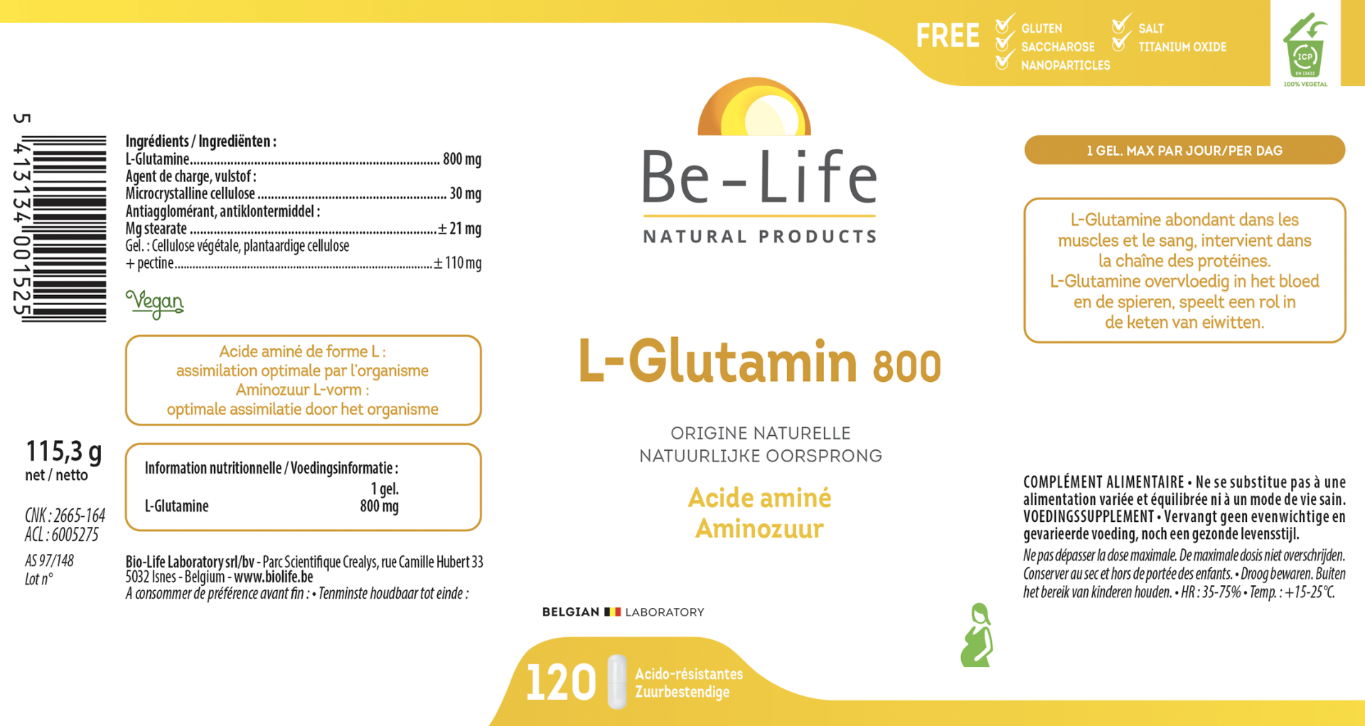 L-Glutamine, niet-GGO, Microkristallijne cellulose, Magnesium stearaat, Plantaardige cellulose (capsule)