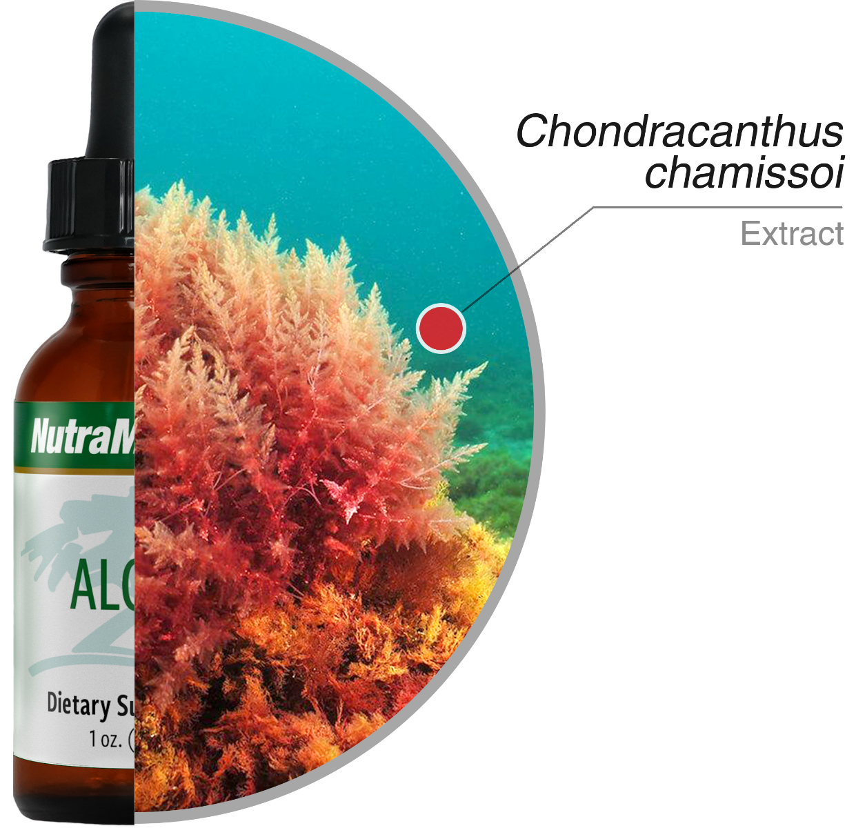 Extractiemiddel (ethanol en mineraal water) en rode alg.