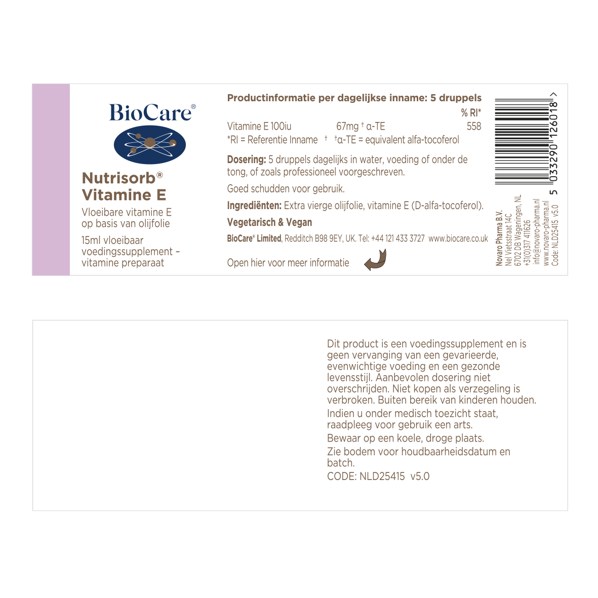 Optimaal geabsorbeerde, krachtige vloeibare vorm met 100 IE vitamine E per 5 druppels.