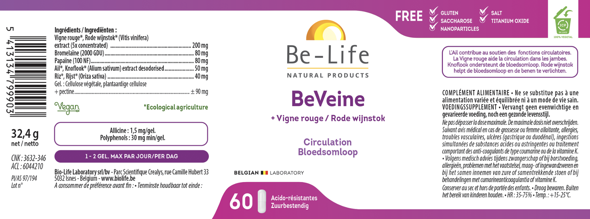 Rode wijnstok bio extract 5x geconcentreerd, Bromélaïne, Papaïne, Knoflook bio extract,