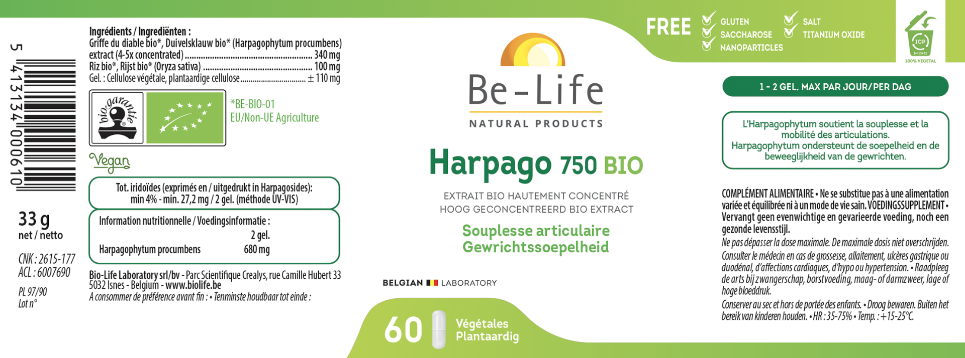 Duivelsklauw (Harpagophytum procumbens) bio extract 4-5/1, Rijst dop,