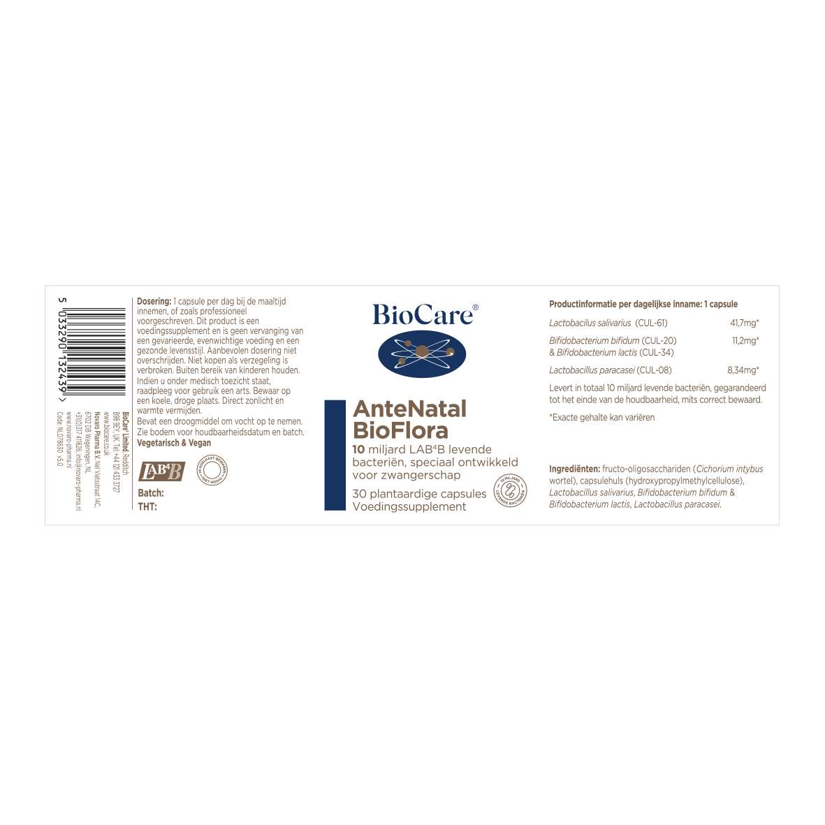 Levert in totaal 10 miljard levende bacteriën, gegarandeerd tot het einde van de houdbaarheidstermijn mits correct bewaard.